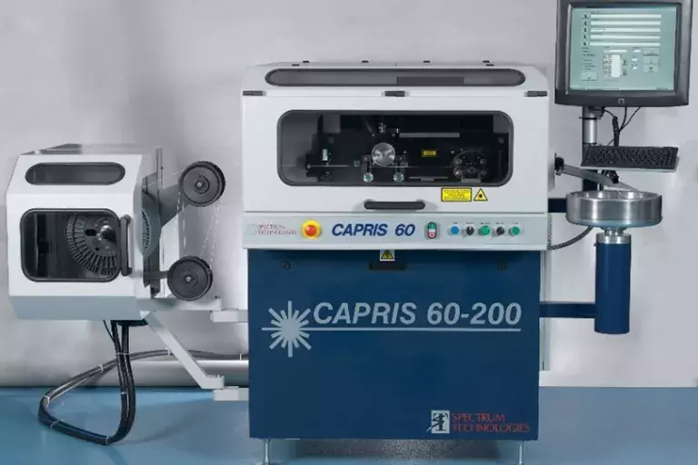 CAPRIS 50是光譜第三代紫外激光打標機中的第一款,更重要的是,它是市場上一款低成本、緊湊型的紫外激光打標機,為飛機(MRO)操作以及低產量製造應用提供紫外激光打標技術。它還是一款採用釹激光(Nd:YAG)固態紫外激光的激光打標機,具有即時標識能力。CAPRIS 50具有標記、測量和切割的功能,能夠標識26號至6號電線和電纜。